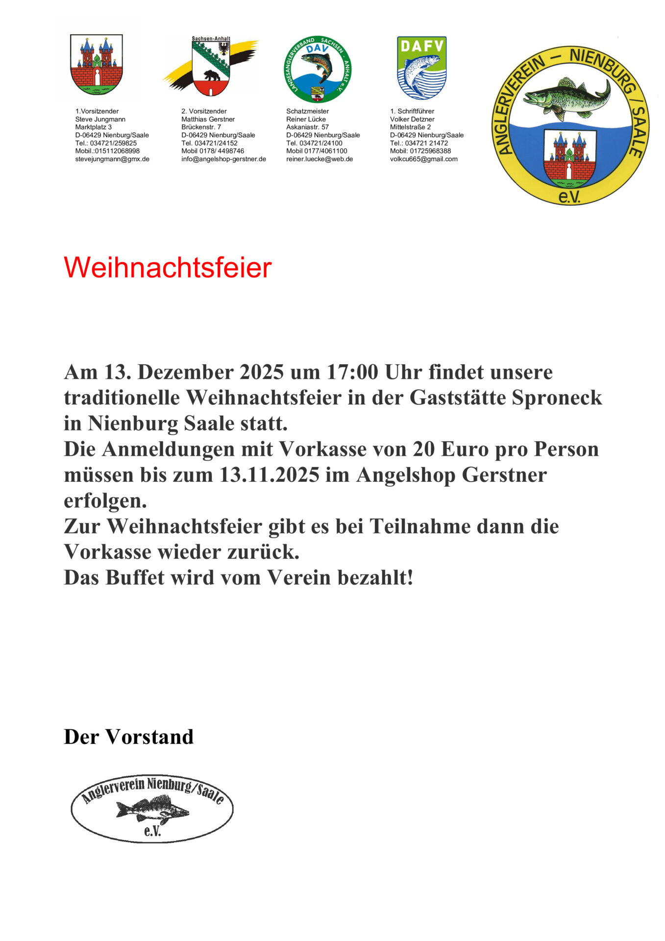 Bitte sich für die Weihnachtsfeier im Angelshop Gerstner anmelden!